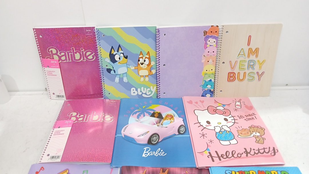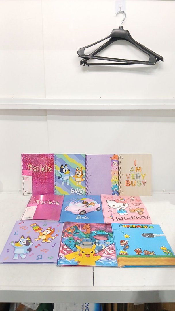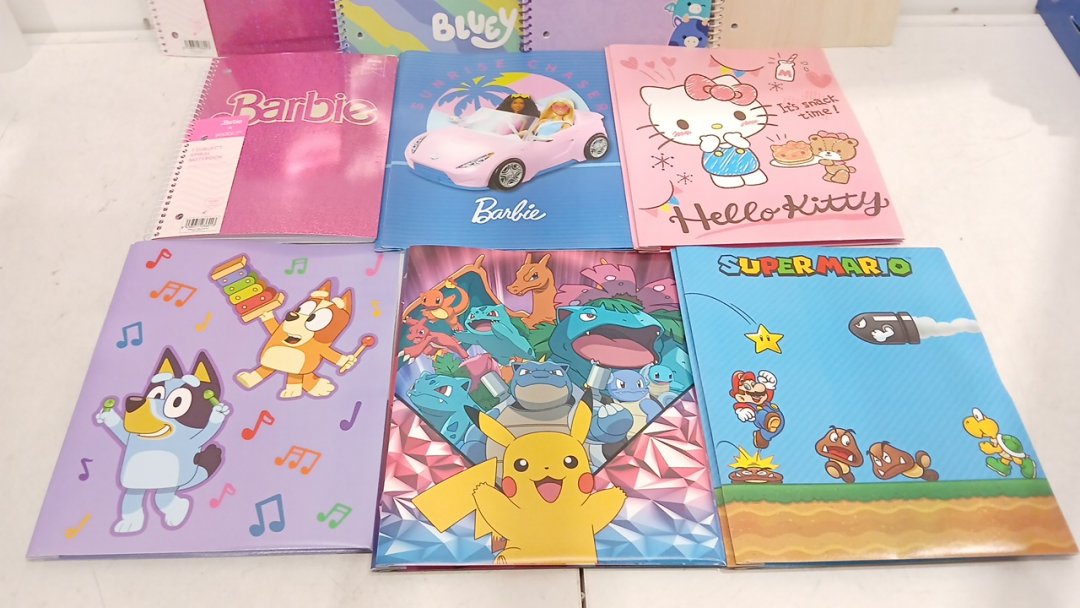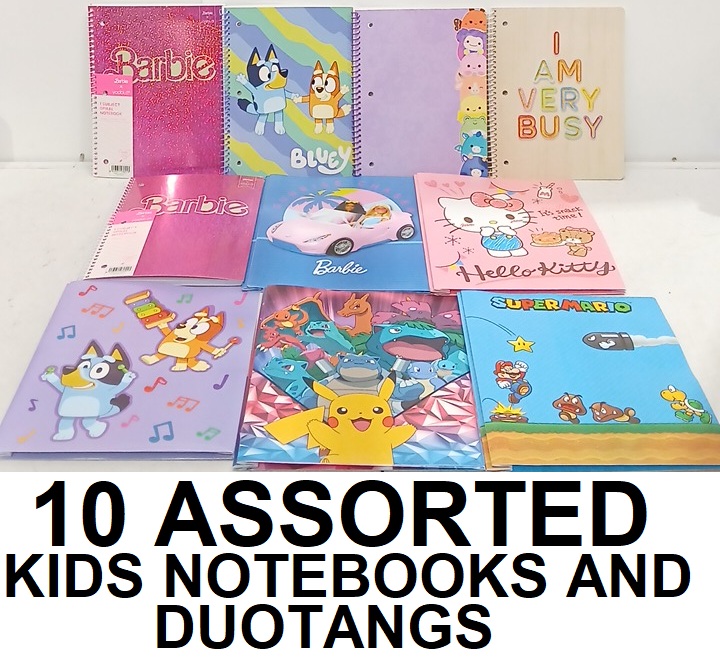 10 ASSORTED KID'S NOTEBOOKS AND DUOTANGS - POKEMON/BARBIE/BLUEY AND MORE
