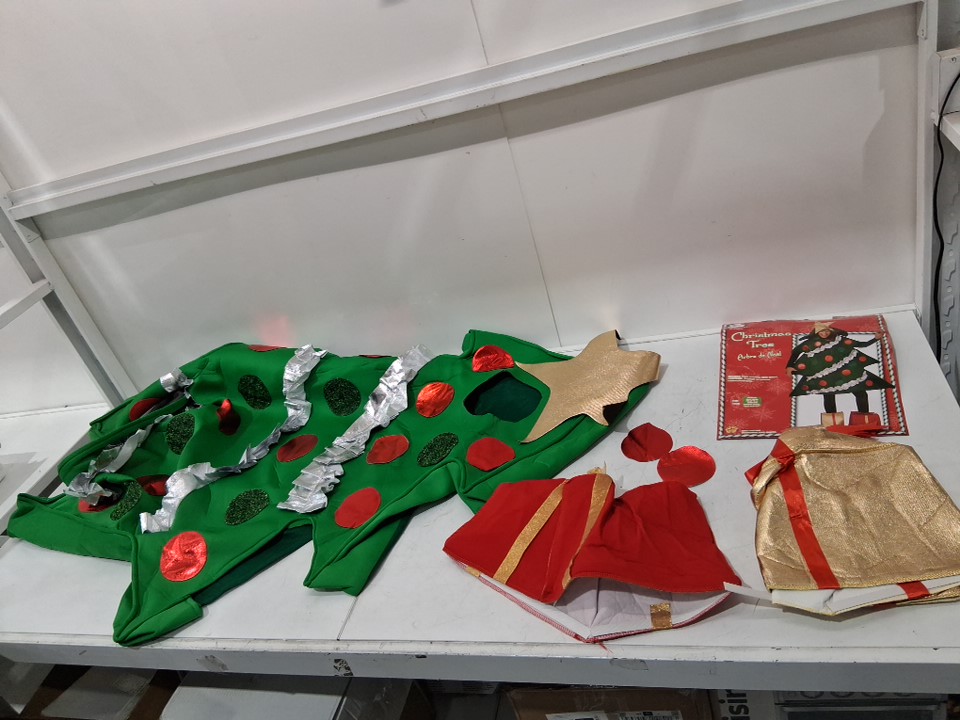 3PC UNISEX ADULTS' RUBIES CHRISTMAS TREE COSTUME WITH PRESENT SHOE COVERS, OSFM, STANDARD.