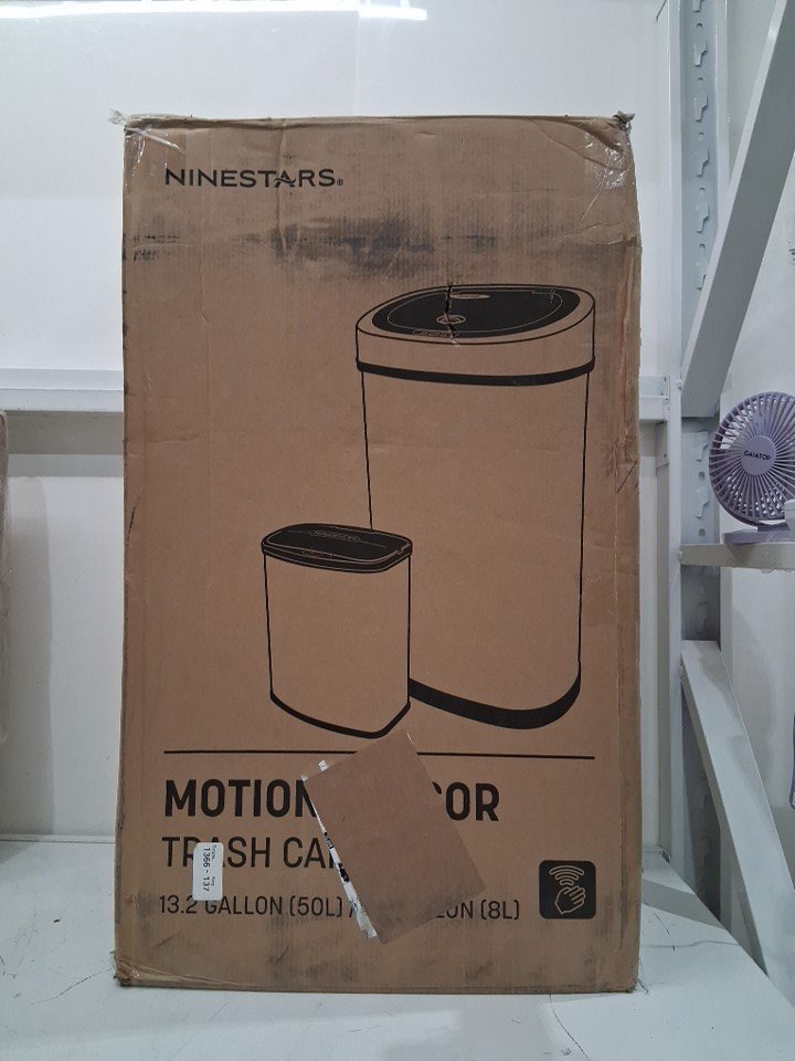 NINESTARS MOTION SENSOR TRASH CAN - 50L - STAINLESS STEEL/BLACK (MODEL: CB-DZT-50-9/8-1)