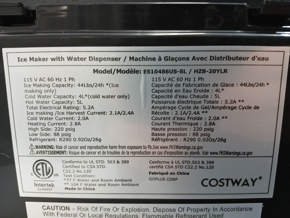 the unit has been tested for power and has water still inside from previous use.