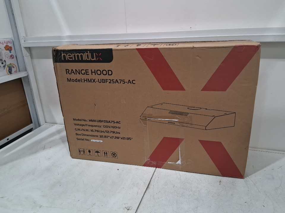HERMITLUX corded UNDER CABINET RANGE HOOD with charcoal filter- 3 speed exhaust fan- 30" - stainless steel/BLACK (MODEL: HMX-UBF25A75-AC)