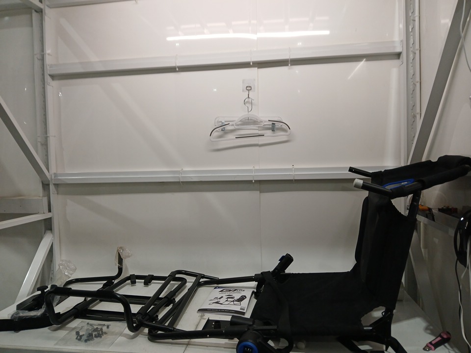 dust on item from inspection in warehouse. tested locking joints for function. may need additional generic hardware for full assembly