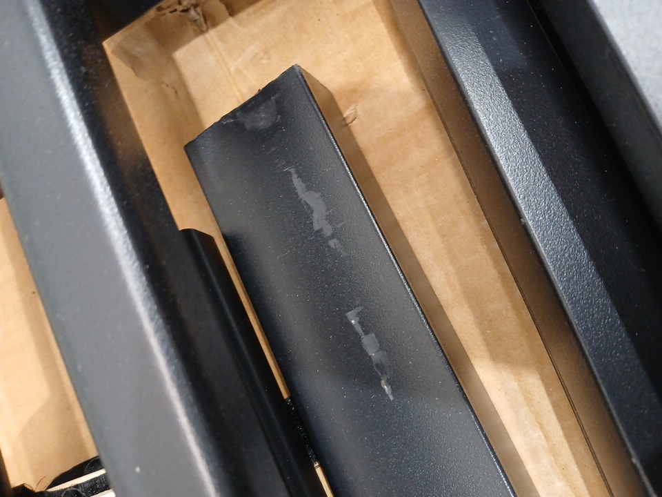 there is dirt, scuffs/scratches & light bends present due to previous use. most of the hardware is missing but is replaceable