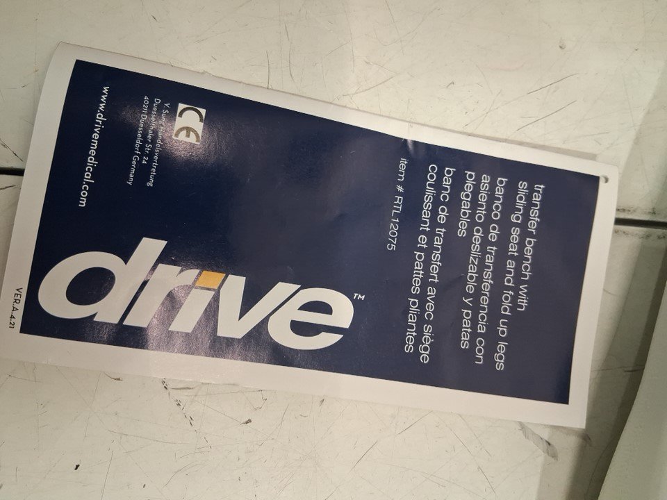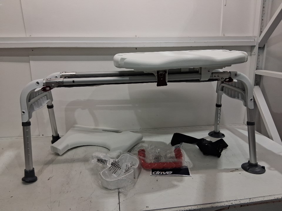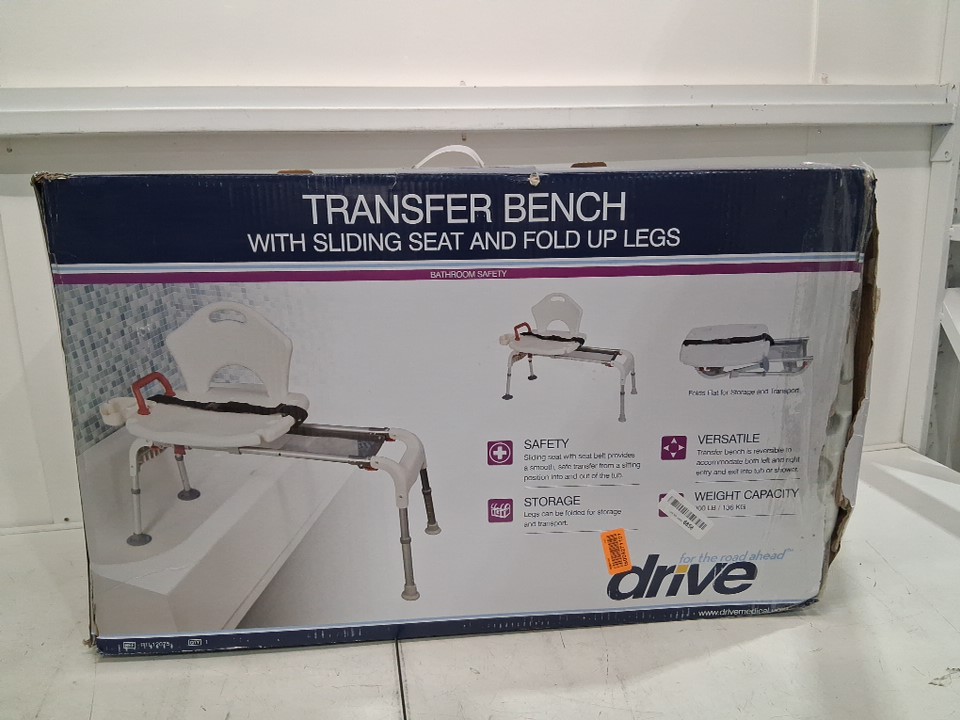 DRIVE UNIVERSAL BATHTUB TRANSFER BENCH FOR ELDERLY WITH SLIDING SEAT AND FOLD UP LEGS - HOLDS UP TO 300LBS - WHITE - (MODEL: RTL12075)