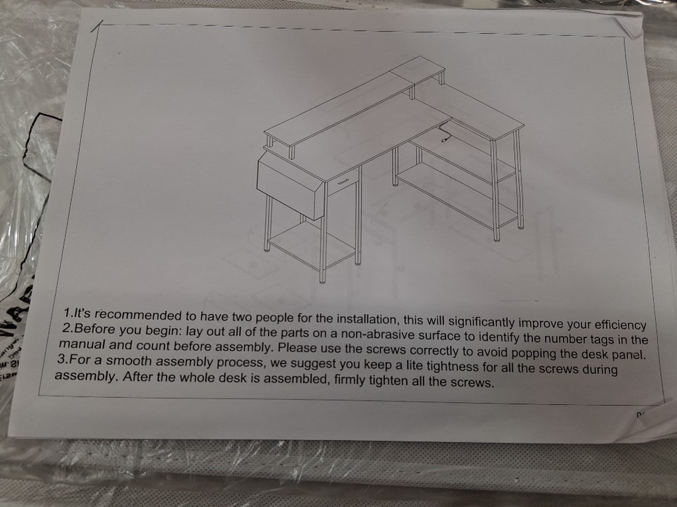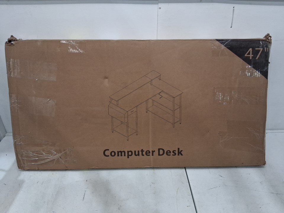 lufeiya L-shaped computer desk with monitor stand, led lights, and charging station - 47" x 31" x 34" - white - (model: ‎LFY-L1D3SMS47-White)