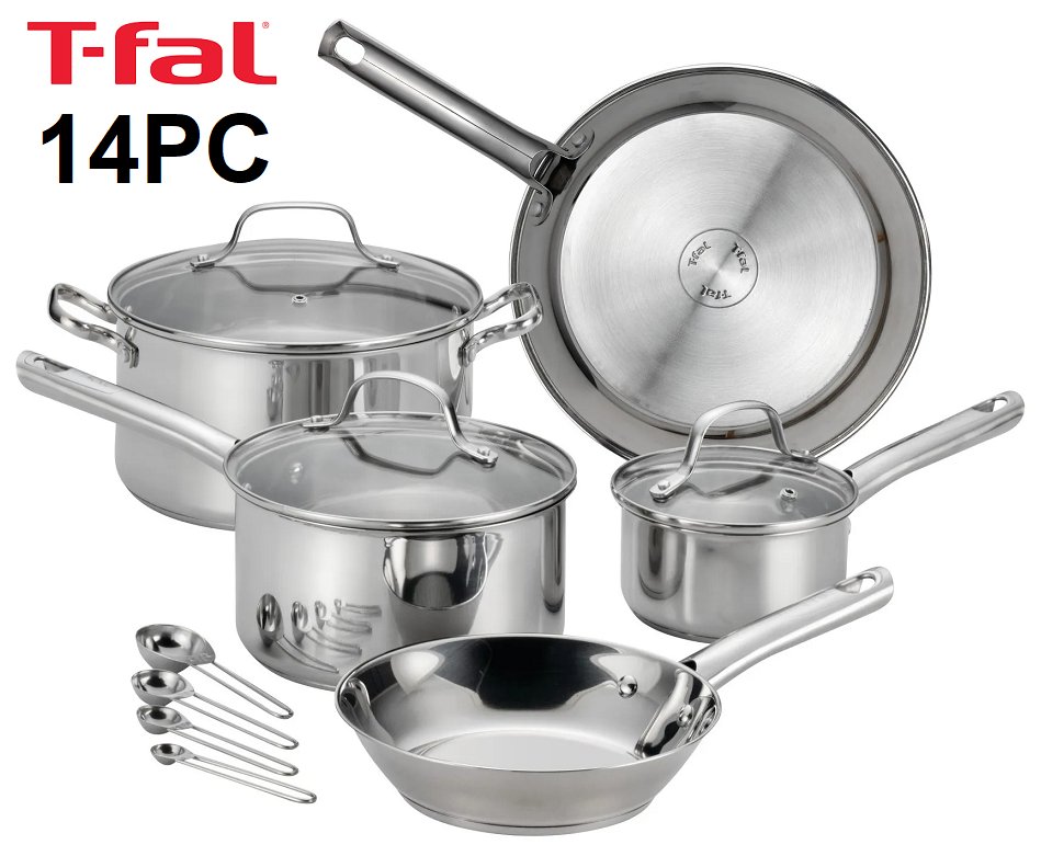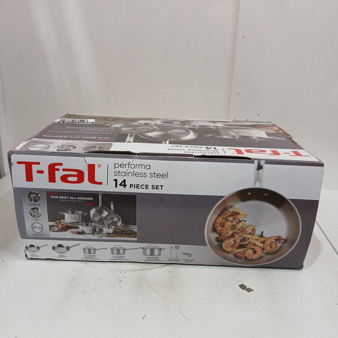 14PC T-FAL PERFORMA SERIES DISHWASHER & OVEN SAFE COOKWARE SET - STAINLESS STEEL