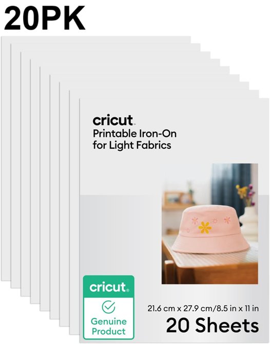 20pk Cricut Printable Iron On for Light Fabric - 8.5" x 11"
