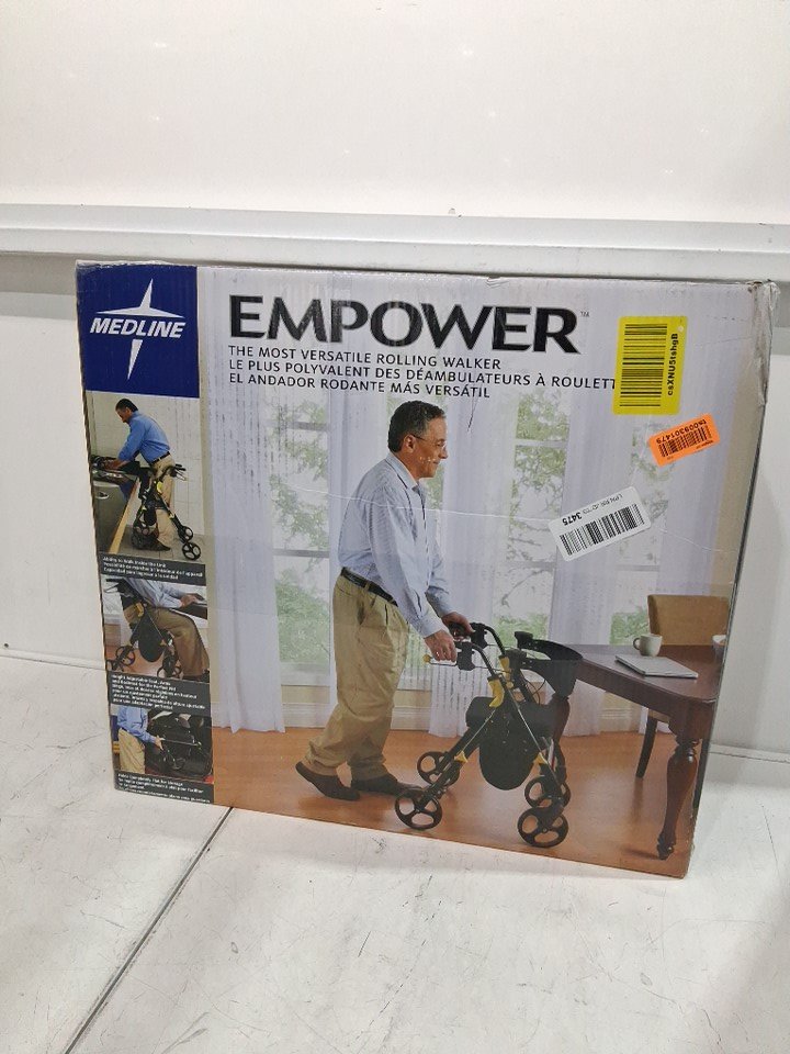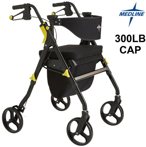 MEDLINE GUARDIAN BASIC STEEL ROLLATOR WITH 8" WHEELS ROLLING WALKER - 300LBS CAPACITY - black/yellow (model:‎ MDS86845BLKM)