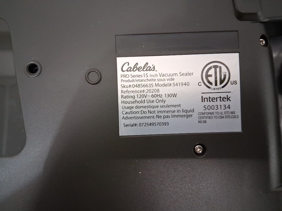 CABELA'S VACUUM SEALER - 15" - BLACK (MODEL: 04856635)