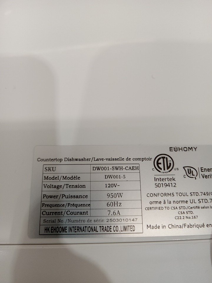 euhomy portable Countertop mini Dishwasher with built-in Water Tank and 6 Programs - no hookup needed - 5l - white/black (model: dw001-5)