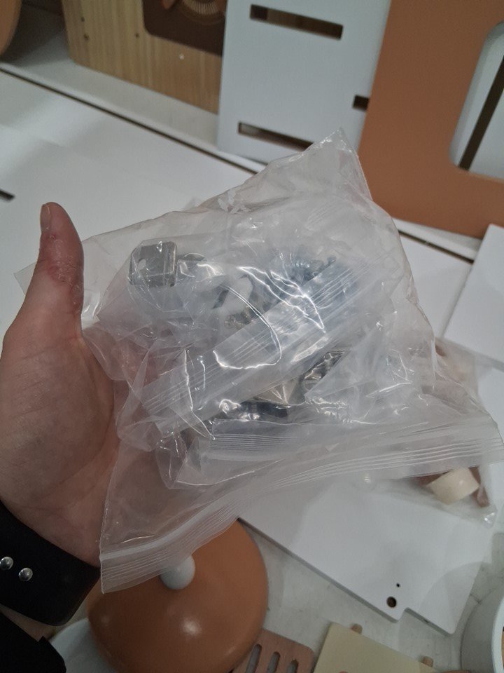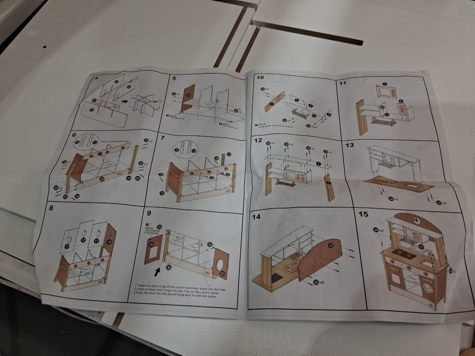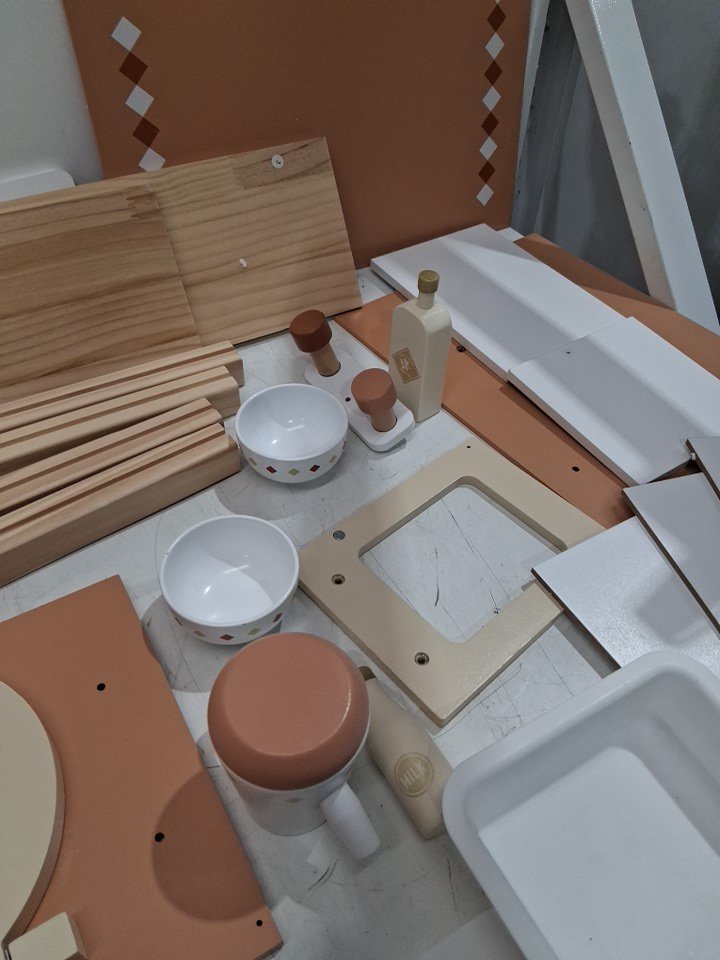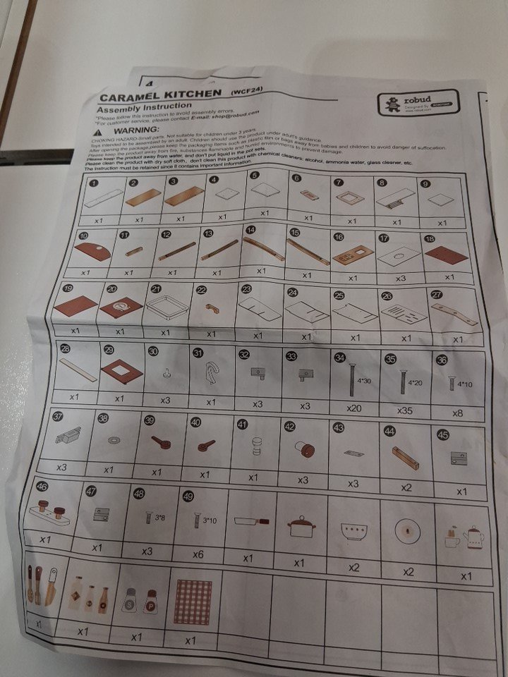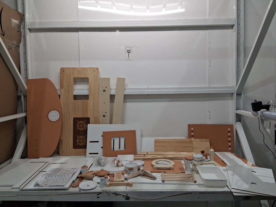 There are some marks on the wood pieces for kitchen, the clock is also broken but all other pieces appear to be there, see photos.