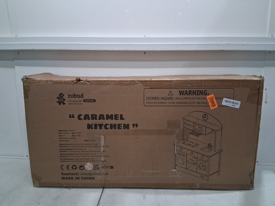 kids robud play kitchen - 29.7" x 13.8 x 38.6" - caramel/beige - (model:wcf24)
