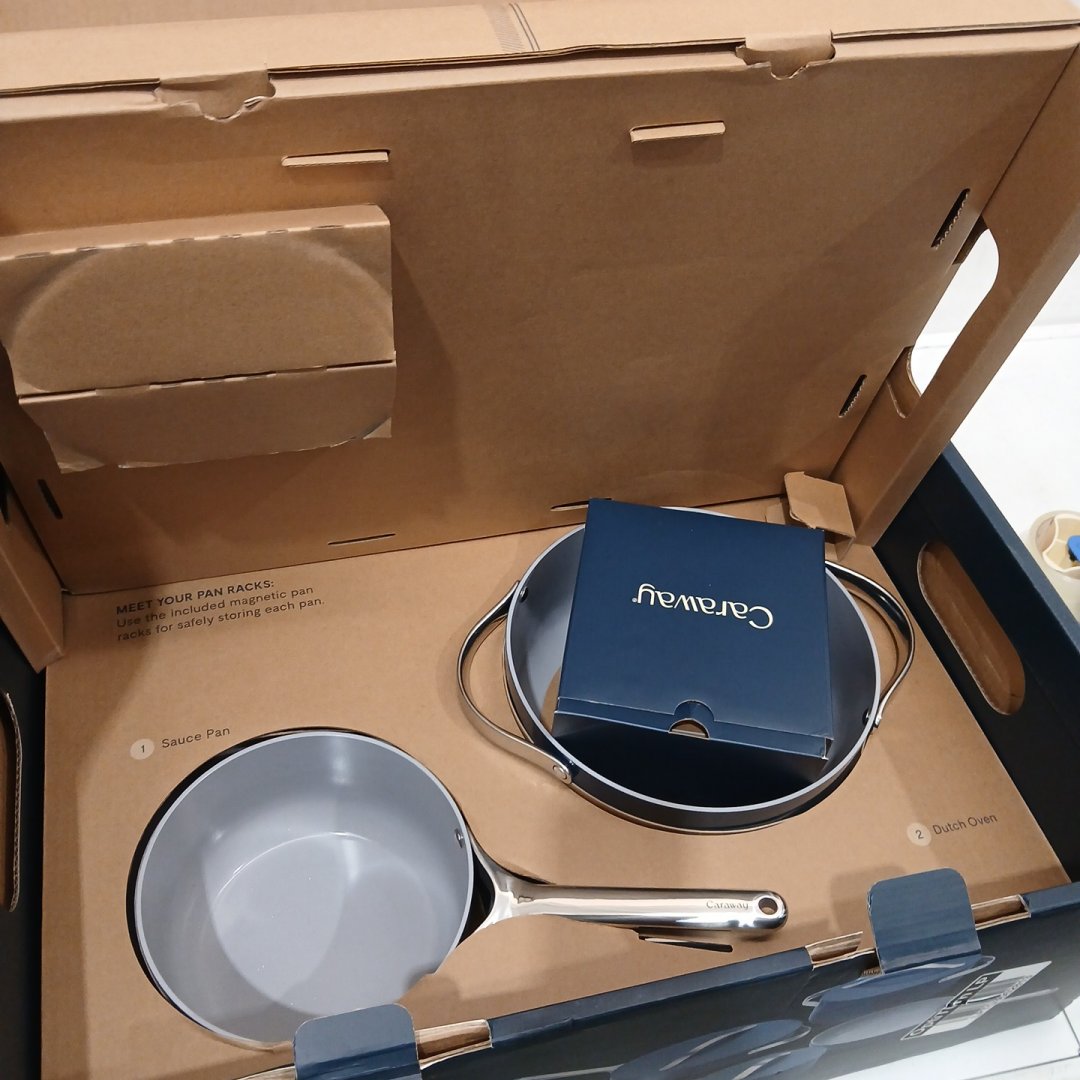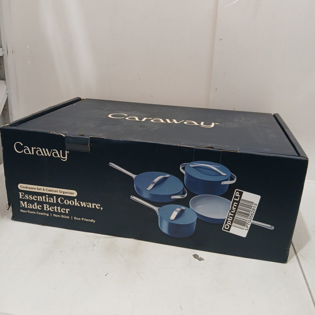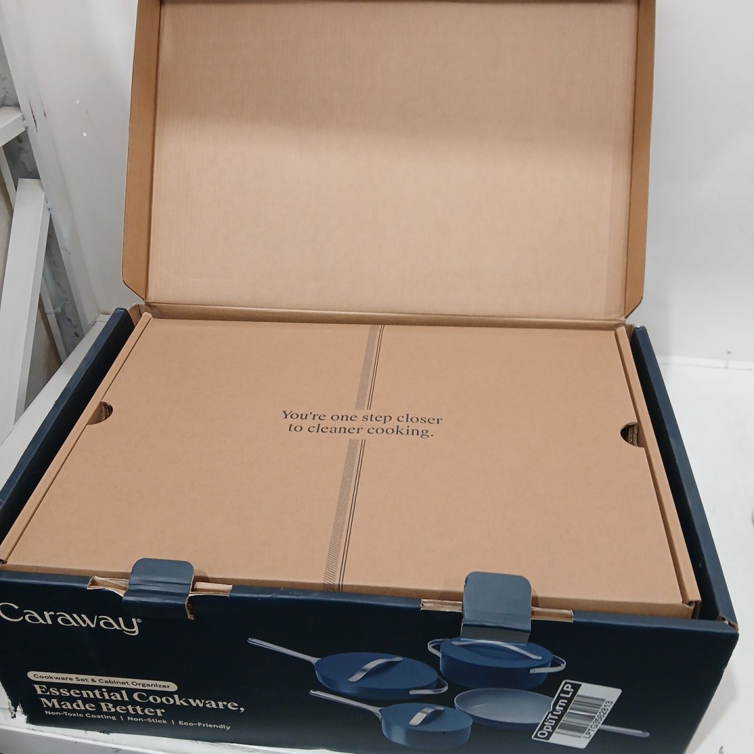 12PC CARAWAY PREMIUM CERAMIC NON STICK ESSENTIAL COOKWARE SET & CABINET ORGANIZER - navy blue