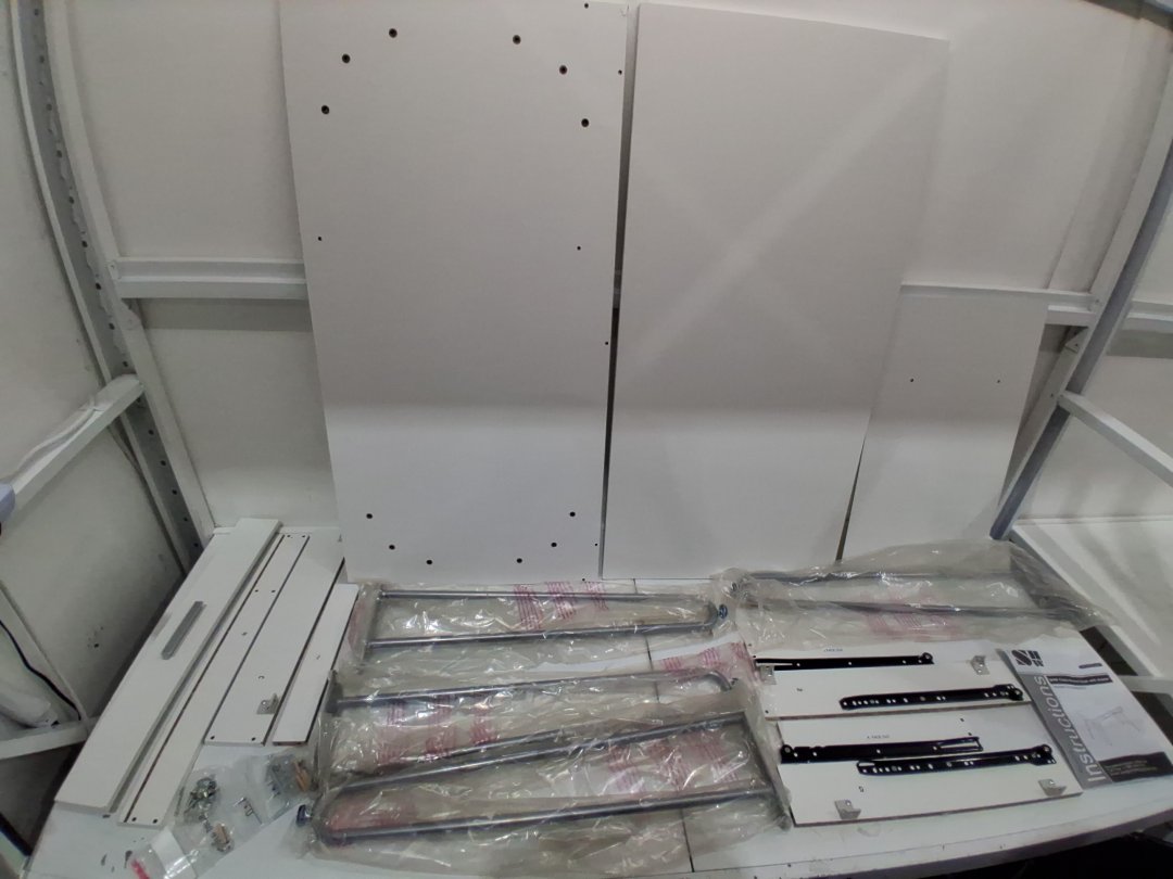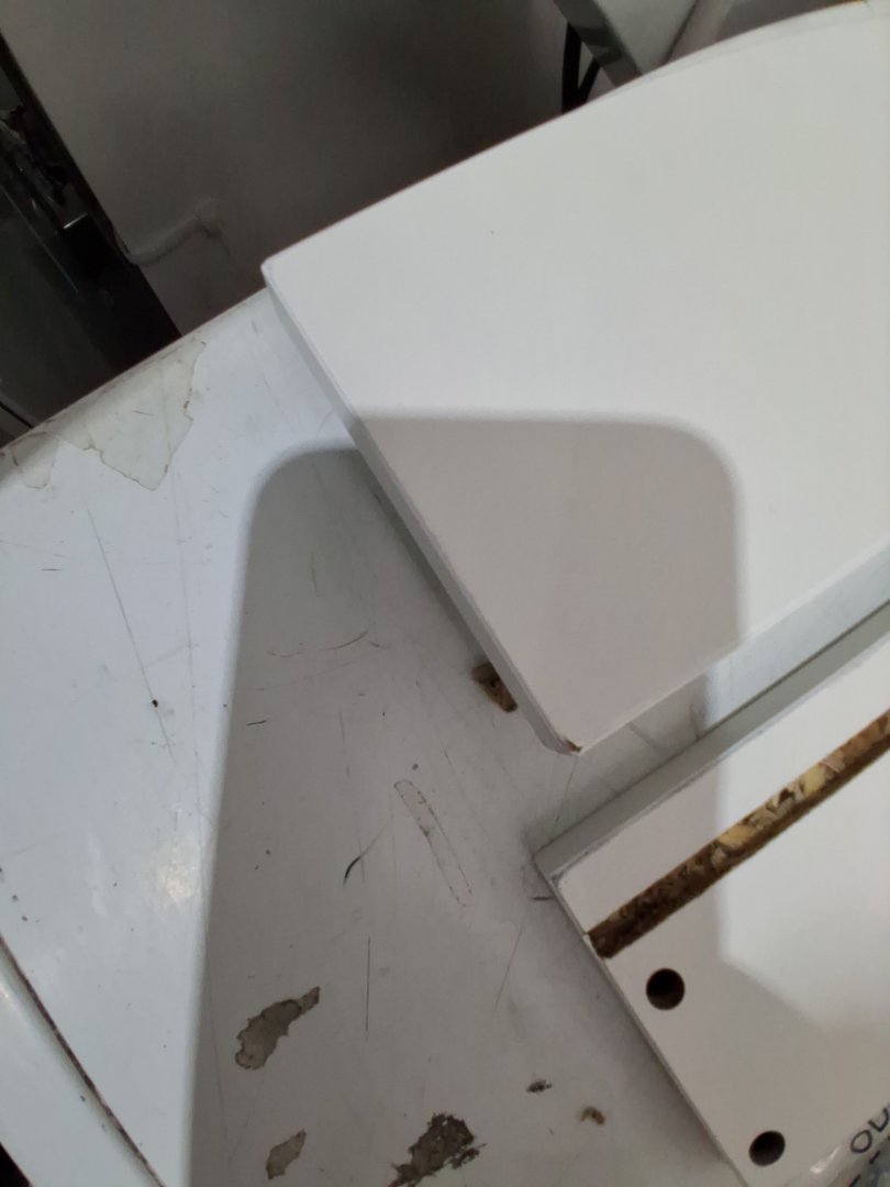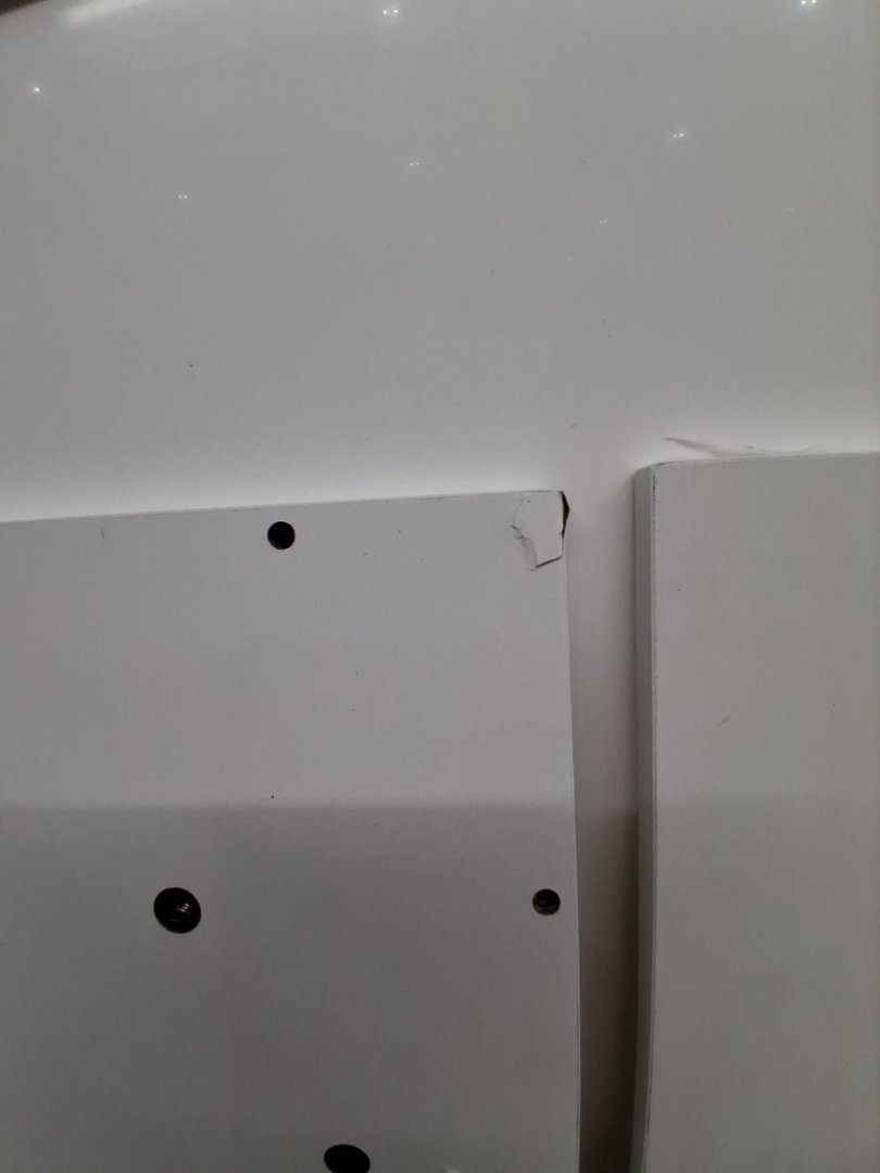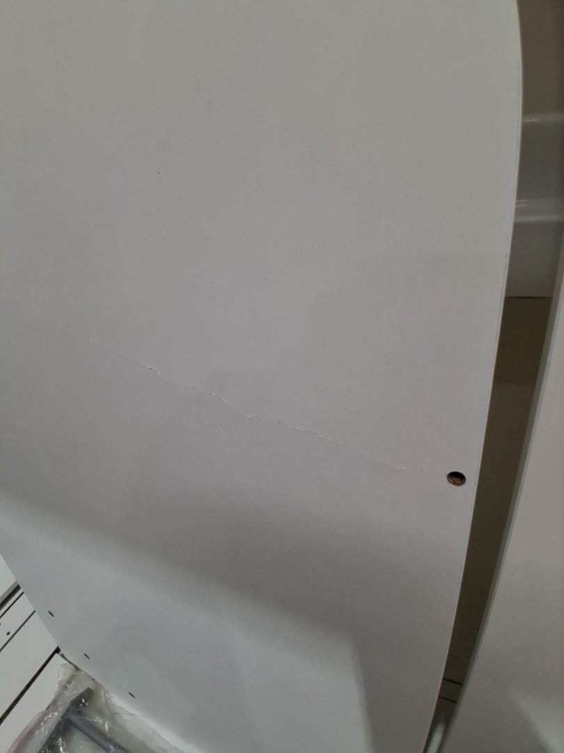 scratches/chips in the top and bottom pieces, as well as other smaller wood components. Missing the back piece. May be able to contact manufacture for replacement, manual is in the box with contact information