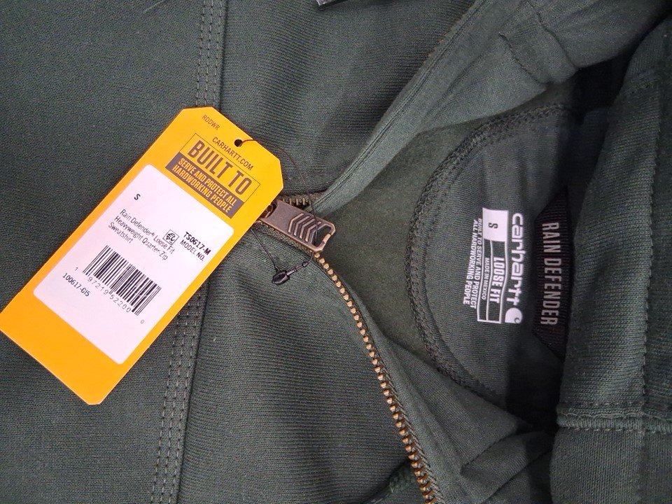 MEN'S CARHARTT RAIN DEFENDER LOOSE FIT HEAVYWEIGHT QUARTER ZIP SWEATSHIRT - small - Forestry Green (STYLE : TS0617-M)