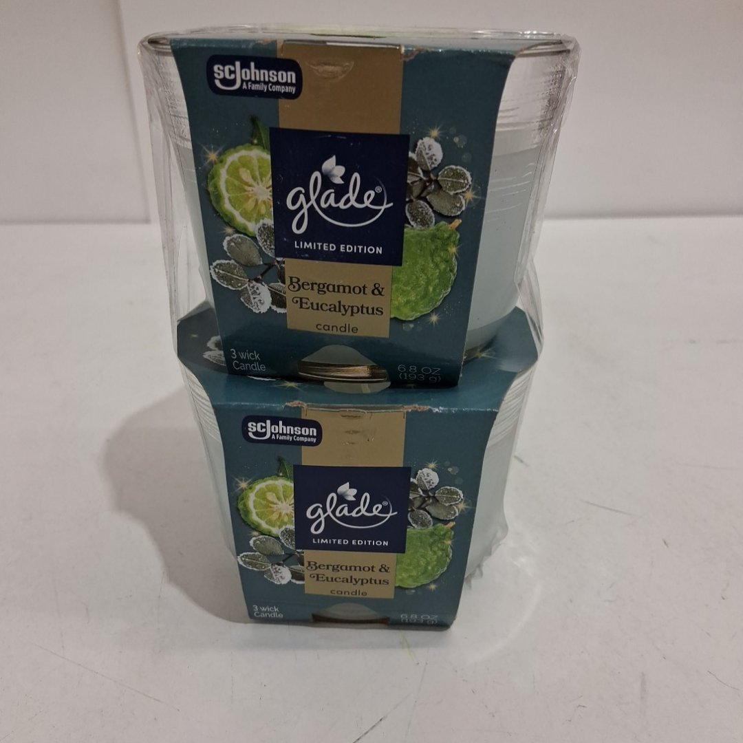 2PK GLADE 3-Wick Scented Candles - Bergamot & Eucalyptus - 6.8OZ EACH