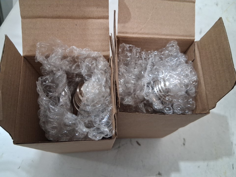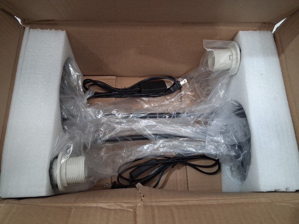 The lampshades are missing from the packaging, but all other parts appear present and in new condition - see photos.