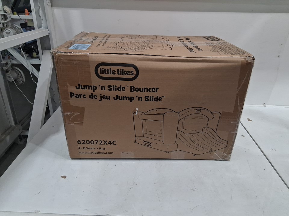 LITTLE TIKES JUMP N' SLIDE INFLATABLE BOUNCER WITH SLIDE with electric blower - 250LBS CAPACITY - 10FT x 7FT x 5FT - PRIMARY COLOURS (model: 620072x4c)