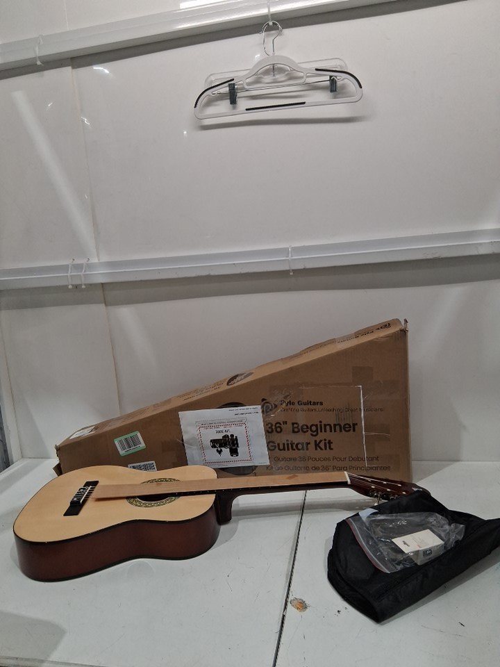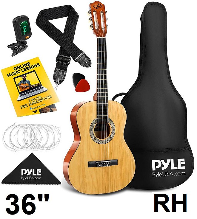 PYLE 36" RIGHT HANDED 3/4 SIZE CLASSICAL ACOUSTIC GUITAR KIT FOR BEGINNER STUDENTS - NATURAL LINDEN WOOD (MODEL: PGACLS82)