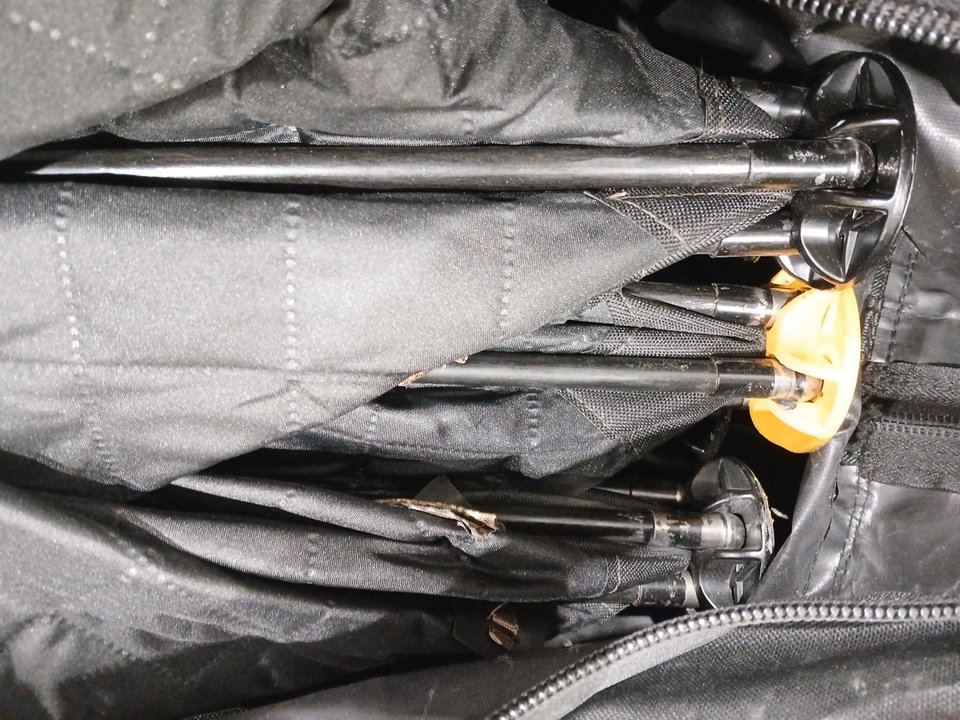 One of the poles snapped and will need to be replaced or fixed in order for the item to function. This item is dirty and has scuffs