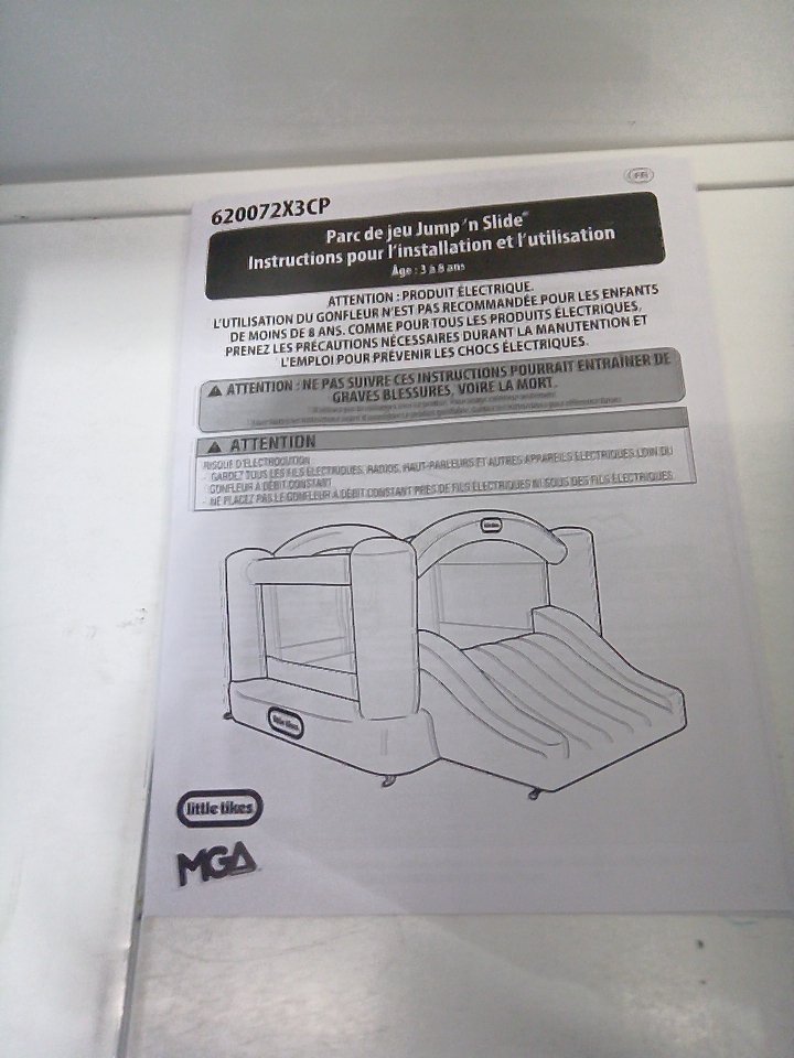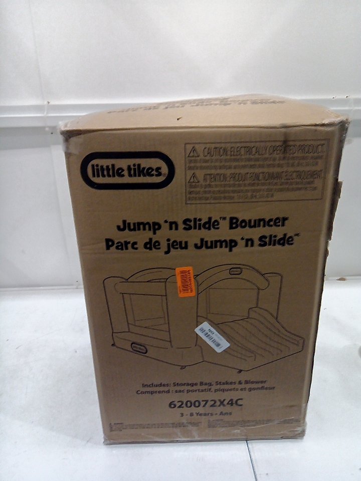 LITTLE TIKES JUMP N' SLIDE INFLATABLE BOUNCER WITH SLIDE with electric blower - 250LBS CAPACITY - 10FT x 7FT x 5FT - PRIMARY COLOURS (model: 620072x4c)