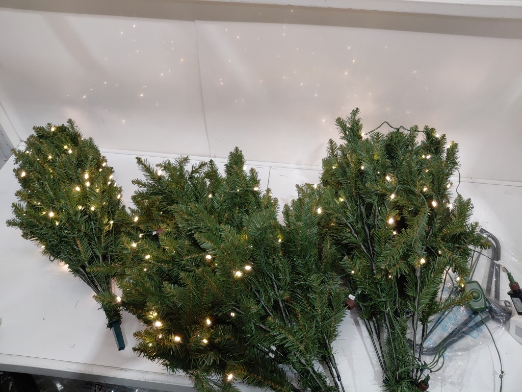Artificial Prelit slim Christmas Tree with base and decorations - warm white bulbs - 6ft - (model: phk_35jkgq8x(6FT))