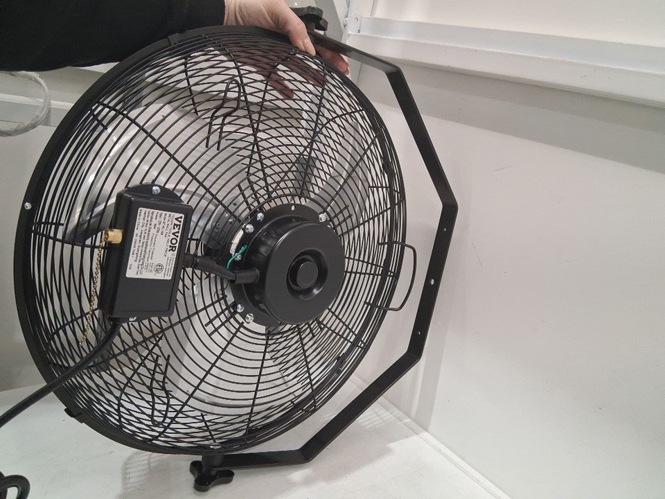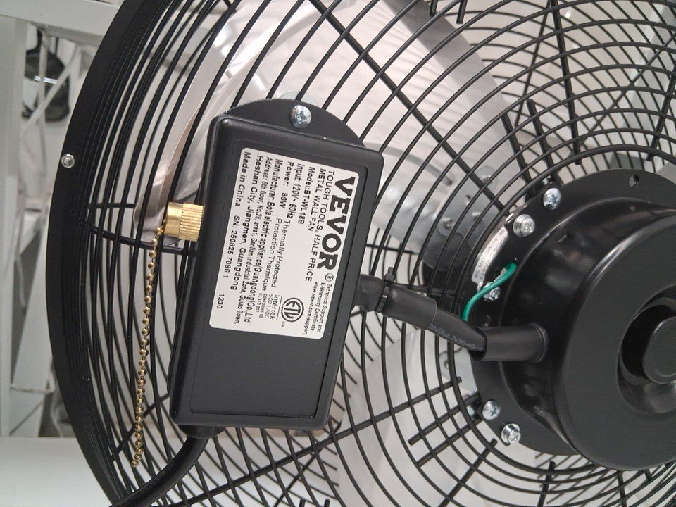 industrial 3-speed tilt-head oscillating metal wall fan - 4150cfm / 18"w - black