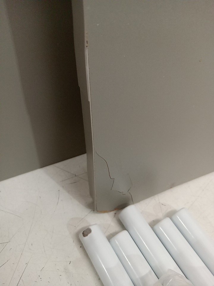 The corner is cracked and the pole is chipped, likely from shipping/handling.