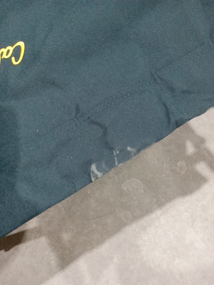 Has some minor dust on the fabric and the bottom of the legs. Has a minor hold on the fabric see photos