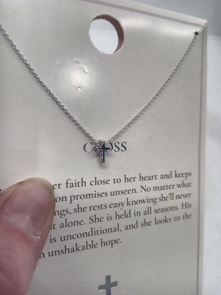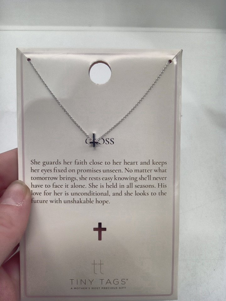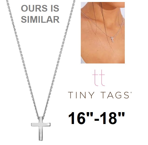women's tiny tags tiny cross charm chain necklace - 16" - 18" - silver.