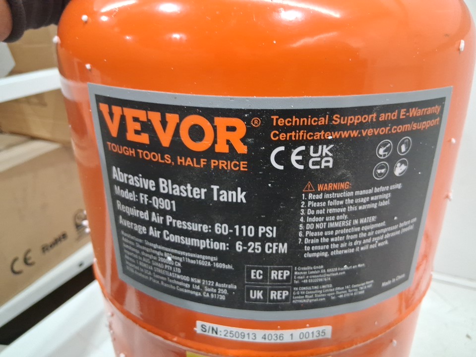 VEVOR Portable Abrasive Blasting Tank able Abrasive Blasting Tank, Air Sand Blasting Kit with 4 Ceramic Nozzles and Oil-Water Separator for Paint, Stain, Rust Removal - 60-110 PSI - 5GAL - ORANGE - (MODEL: ff-q901)