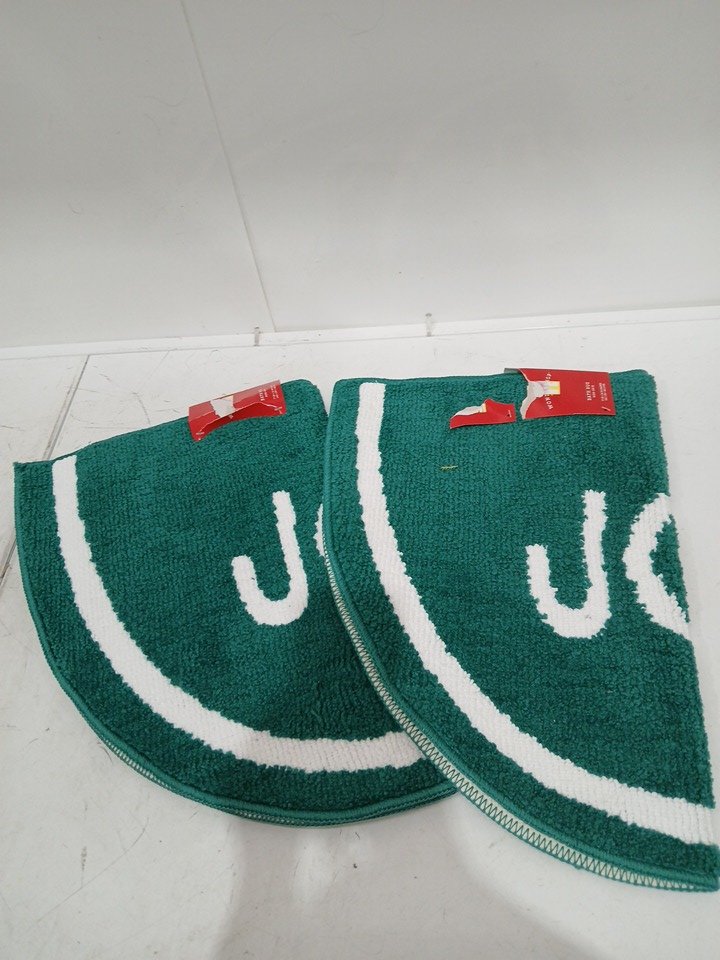 2 WONDERSHOP CHRISTMAS THEME "JOY" HALF ROUND BATH MATS - 17" X 24" - GREEN WHITE
