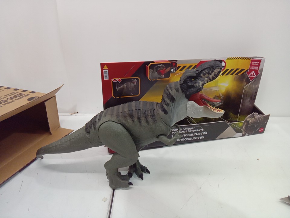 FISHER-PRICE Jurassic World Rebirth Power Devour Tyrannosaurus Rex Dinosaur Figure WITH Lights & Sound - GREY (MODEL: JGB50)