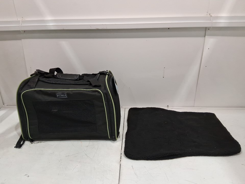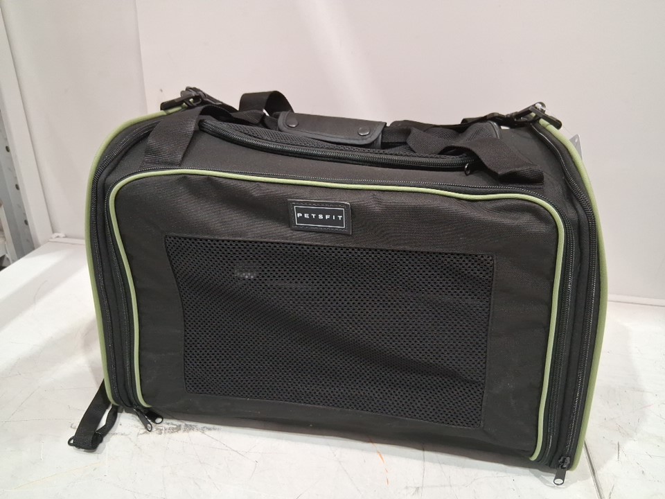 petfit Pet Carrier with Extendable Mat - Cats Under 12 Lbs - 17.5" x 10.5" x 10.5" - black/green trim