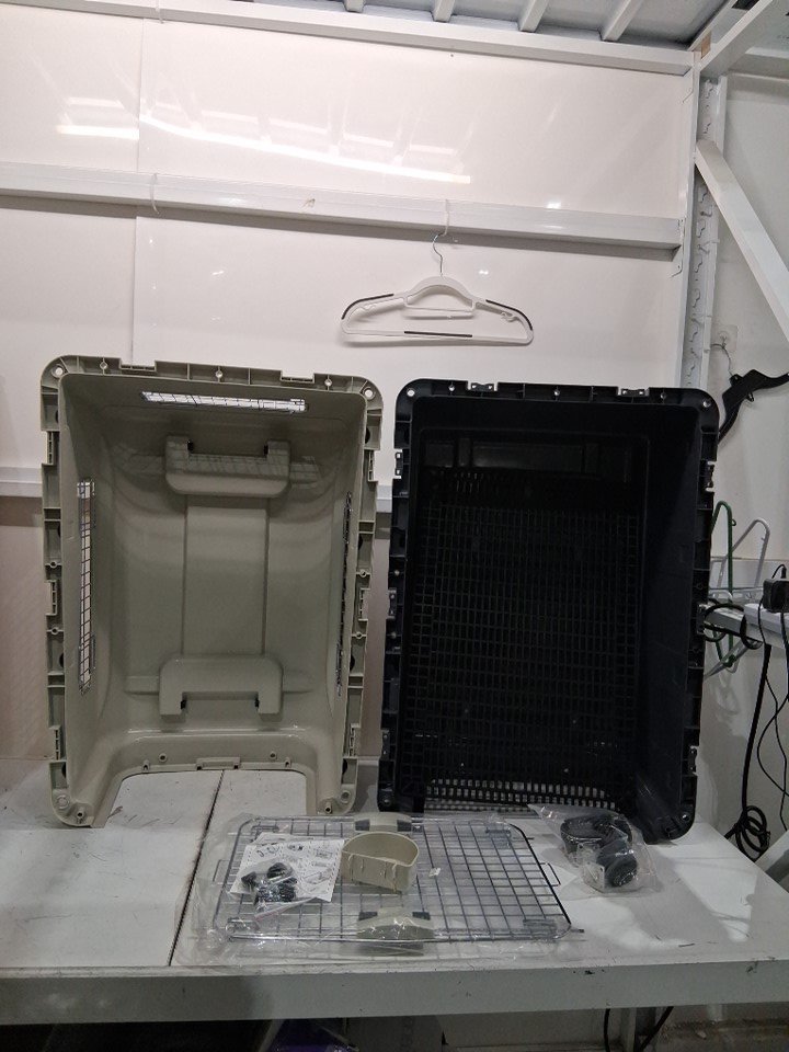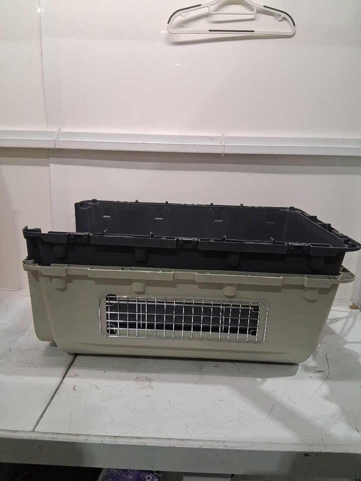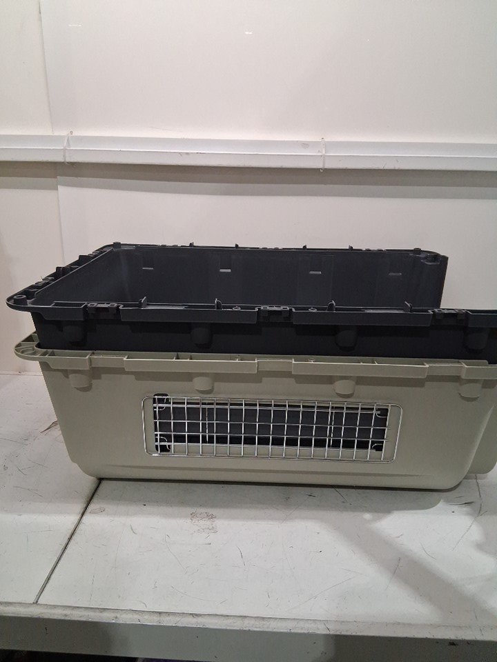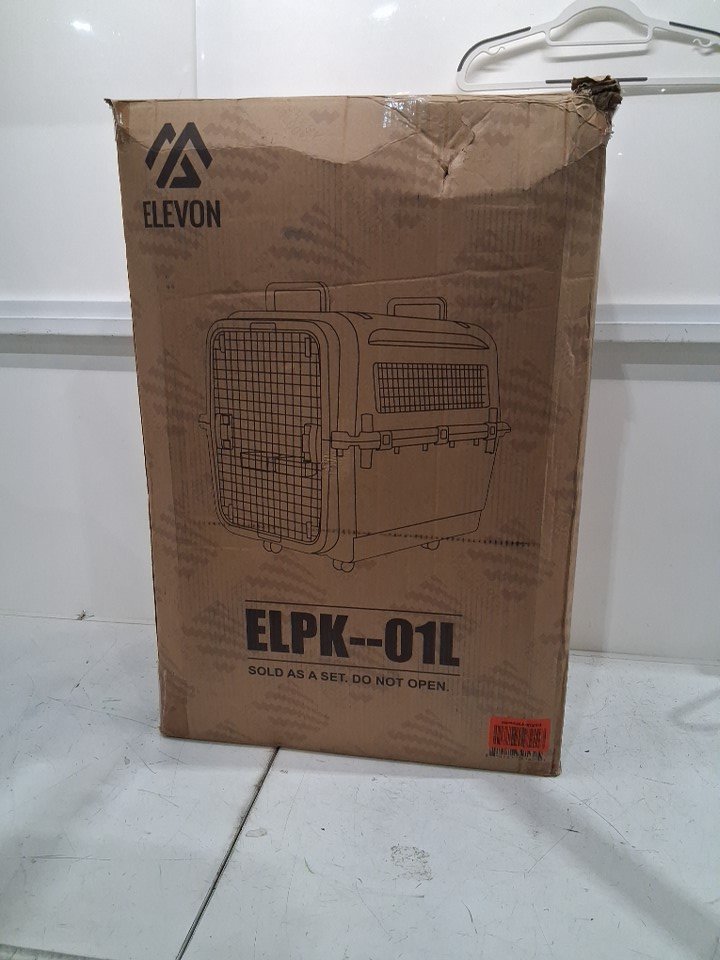 elevon plastic pet carrier kennel with wheels and detachable food trays - 31" x 21" x 23" - large - blue/BLACK - (MODEL: ELPK--01L)