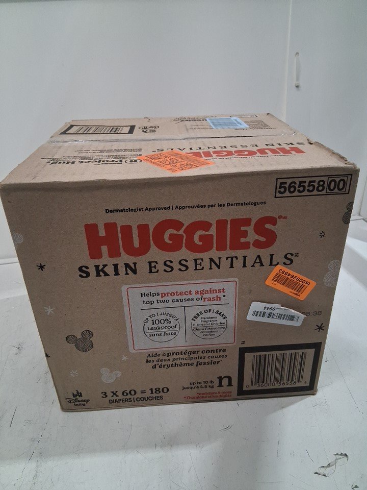 180pk huggies skin essentials 100% leakproof diapers - size newborn