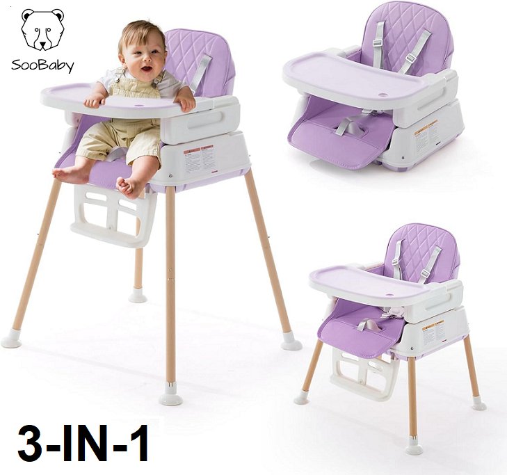 SOOBABY 3-in-1 Adjustable Convertible Baby High Chair For Babies and Toddlers - 34" X 27" X 24" - PURPLE - (model: ha-n009)