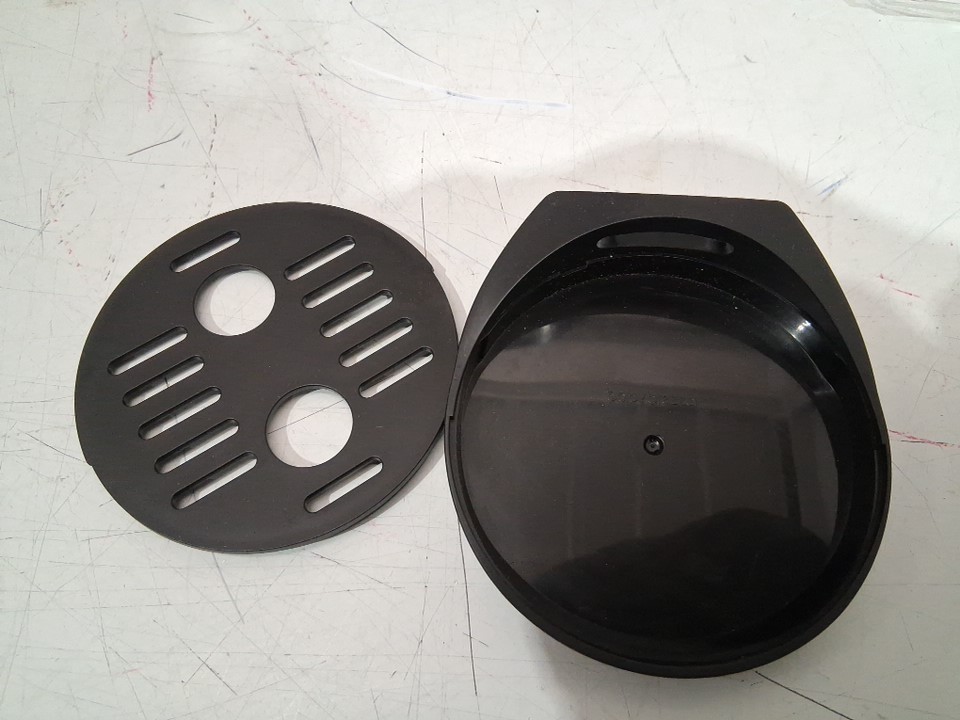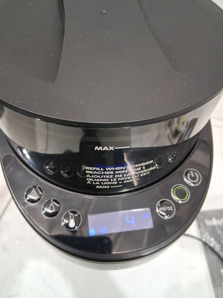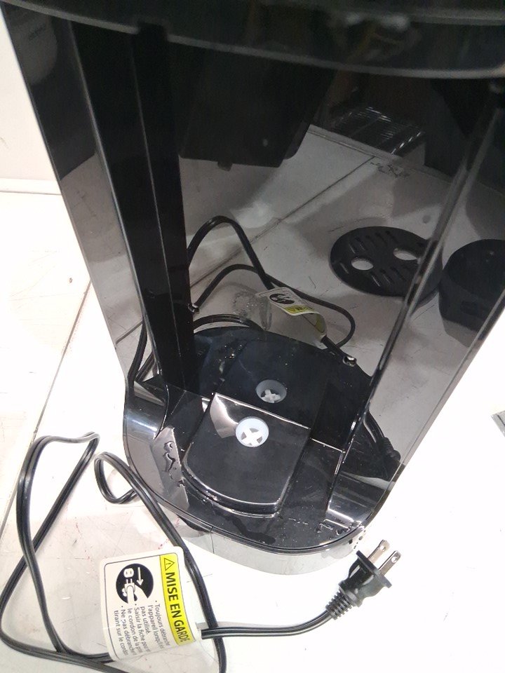 There are water stains on the water tank and there are minor food stains on the top and drip tray due to previous use. Tested for basic power only. (Please see photos)