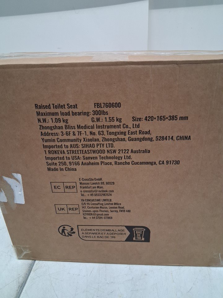 VEVOR Raised Toilet Seat Riser - 4" Raised - White - (Model: fbl760600)