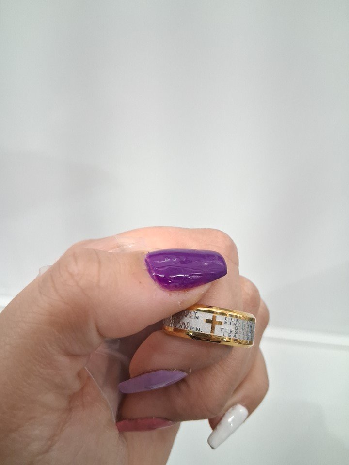 Men's KING WILL Bible Lords Prayer" our father whoart in heaven..." ring - size 8.5 - (316l) Stainless Steel Ring Band with Silver Gold Tone