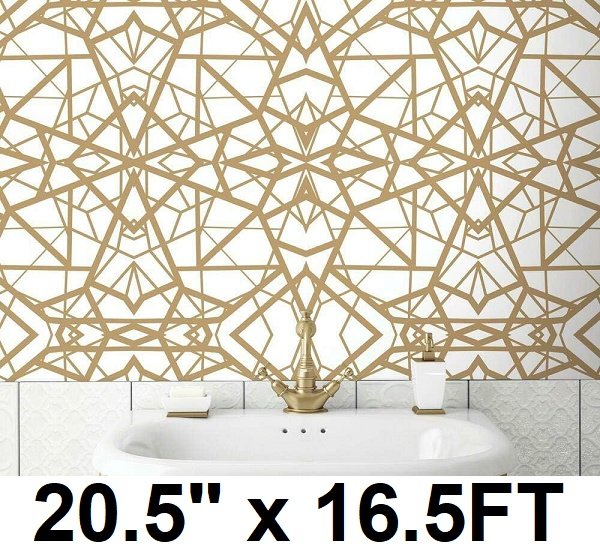 roommates shatter geometric peel and stick wallpaper - 20.5" x 16.5ft - white/gold (model: RMK10687WP)