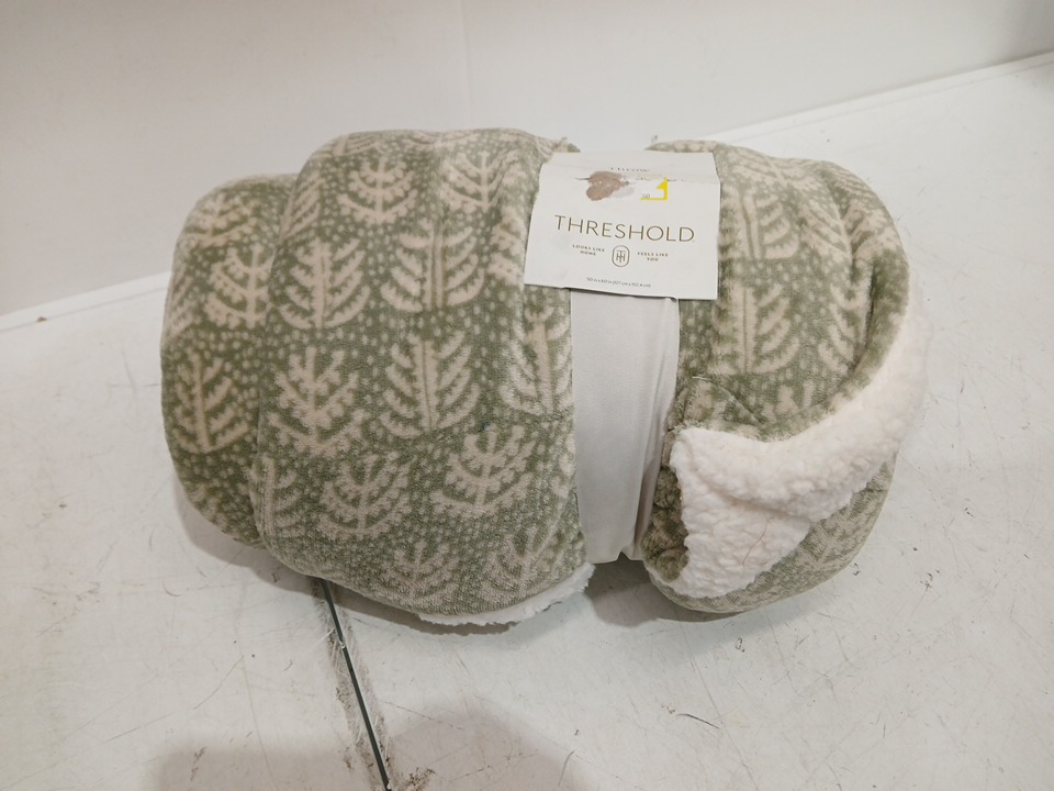 threshold holiday christmas sherpa super soft throw blanket - 50" x 60" - green trees
