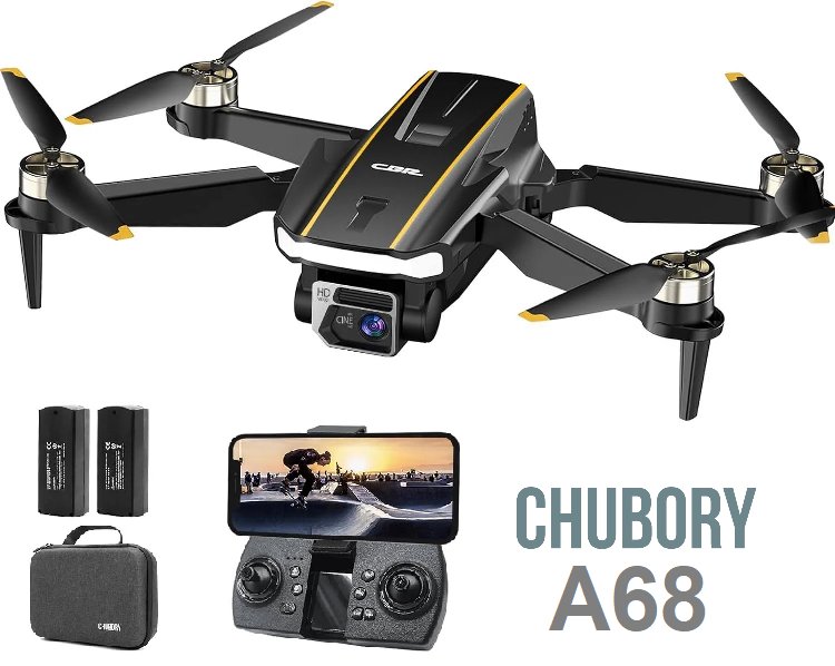 chubory brushless motor drone with camera - a68 wifi fpv quadcopter with 1080p cam - auto hover - black/yellow (model: A68)