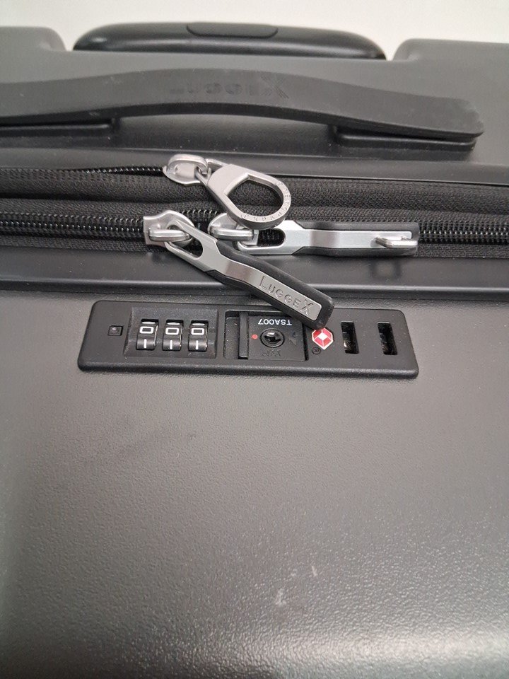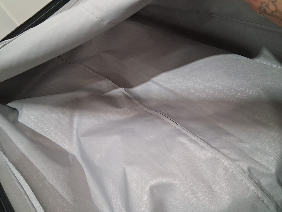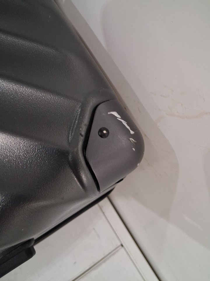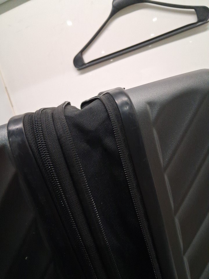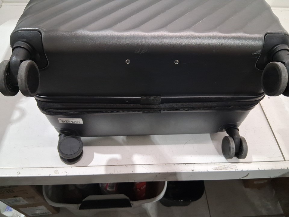 item has some light scuffs around outer luggage as well as some light dirt on wheel indicating prior light use