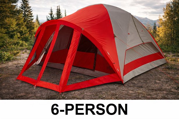 bps dome tent with screen porch - 10ft x 9ft x 72" - 6-person - grey/red