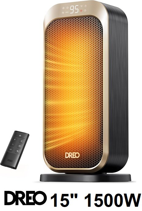 Dreo Home Indoor PTC space Heater Indoor Fan with Remote Control - 70° Oscillation 1500W - Silver/Black (Model: ‎DR-HSH019)