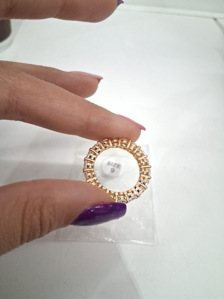 women's gemsme cubic zirconia eternity band ring - size 9 - 18k gold plated.