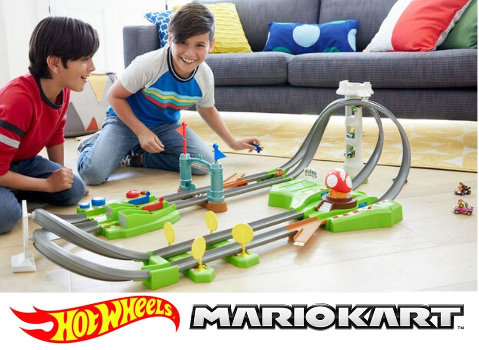hotwheels mariokart circuit track racing set with mario & yoshi toy cars (MODEL: HFY15)