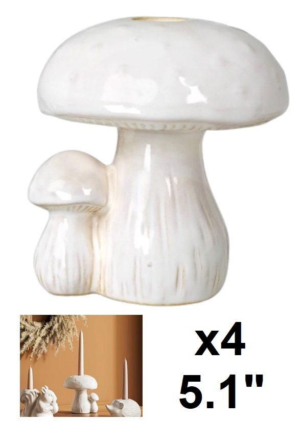 4 Room Essentials Ceramic Mushroom Taper Candle Holder - 5.1" - White
