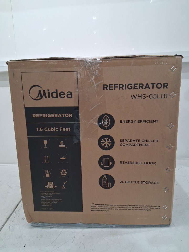 MIDEA COMPACT 1.6 CU.FT REVERSIBLE SINGLE DOOR REFRIGERATOR/FREEZER - BLACK (MODEL: WHS-65LB1)